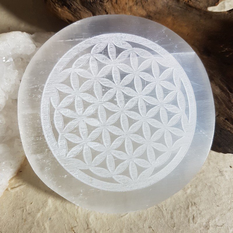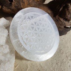 Sélénite Disque gravé Fleur de vie