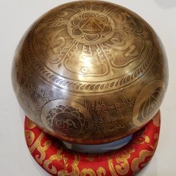 Ce Bol chantant de méditation présente des détails gravés minutieux et une patine, qui lui confèrent une finition belle et agréable.